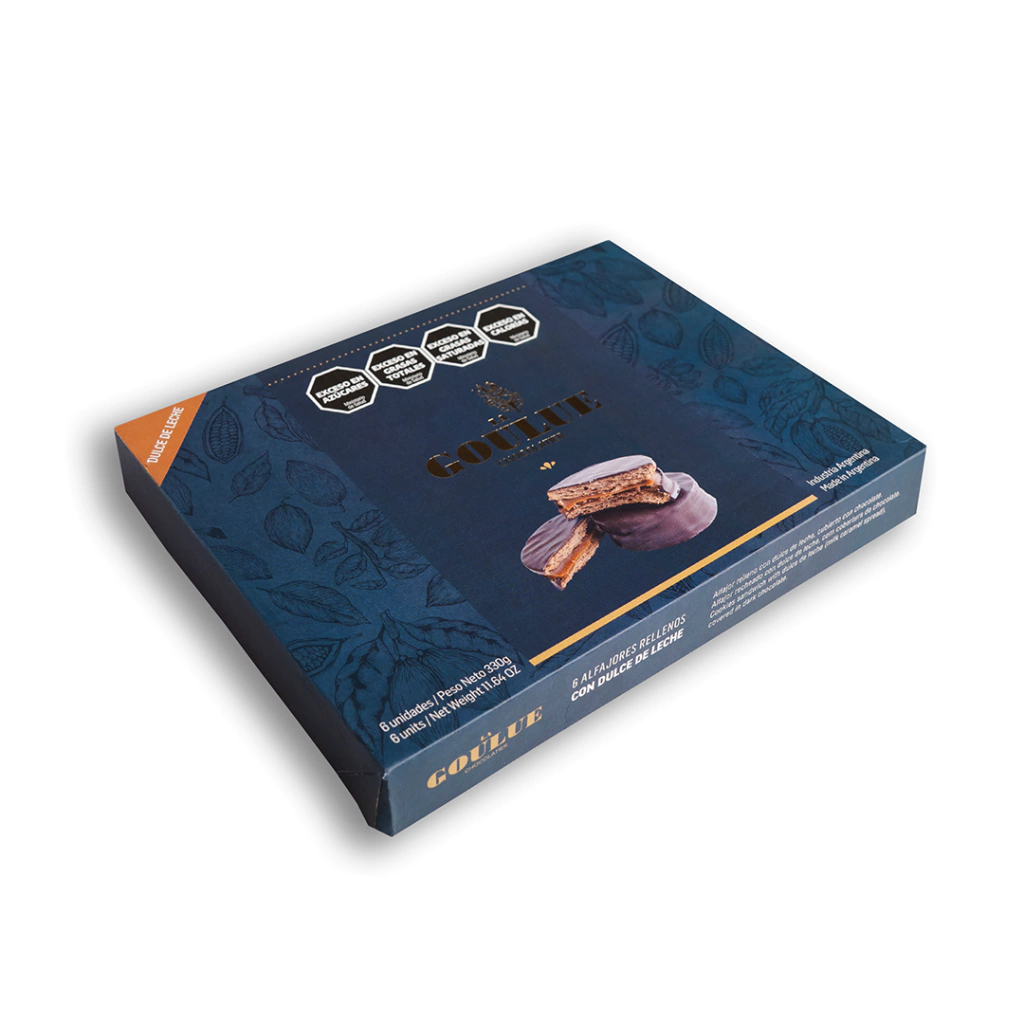 Caja x 6 Alfajores de Dulce De Leche Premium con cobertura de Chocolate.
